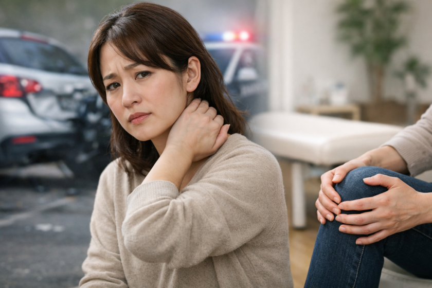 軽い追突でも要注意。交通事故後に遅れて出る膝・首の不調